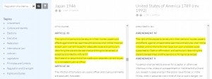 Comparison of evidence collection provisions in Japan and US constitutions.